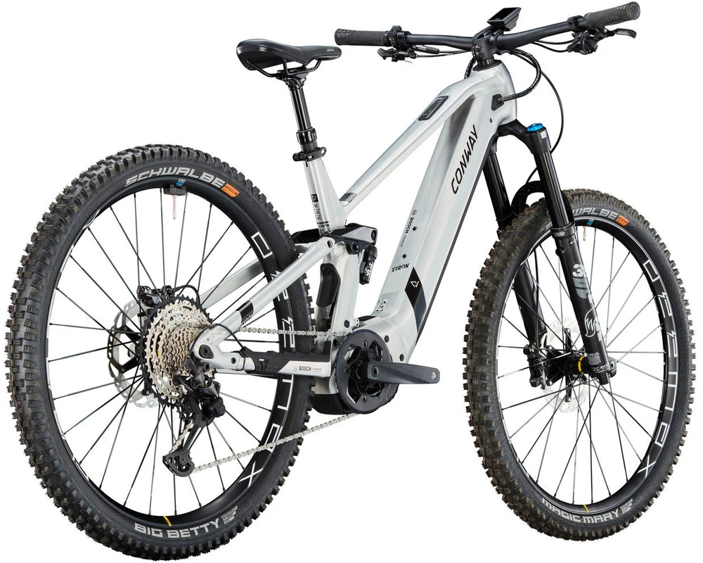 Das Conway Xyron S 5.9 ist das perfekte Einsteiger E-MTB. In Sachen Performance muss man beim aber keine Abstriche machen. Es überzeugt mit einem leistungsstarken Bosch Performance CX Gen 4 Motor. Der 750 Wh große Akku versorgt dich zuverlässig mit dem nötigen Strom, damit du noch länger die Zeit auf deinem Bike genießen kannst.