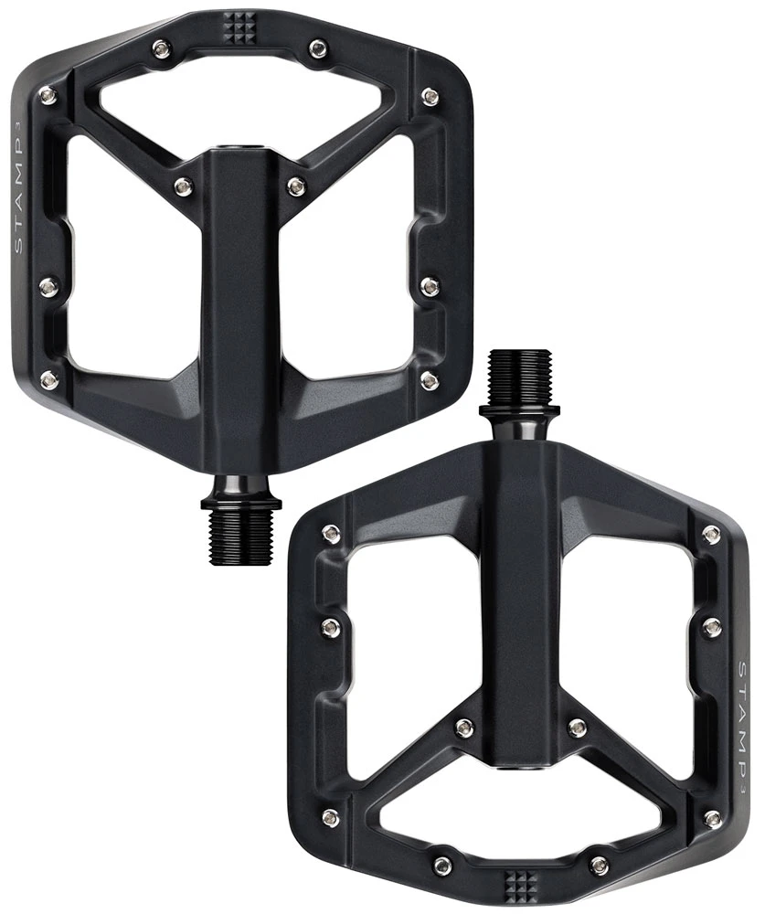 Die Stamp 3 von Crankbrothers sind größenspezifische Plattformpedale mit Magnesium-Pedalkörper und jeder Menge Grip. Sie sind die optimale Schnittstelle zwischen Bike und Schuh.
