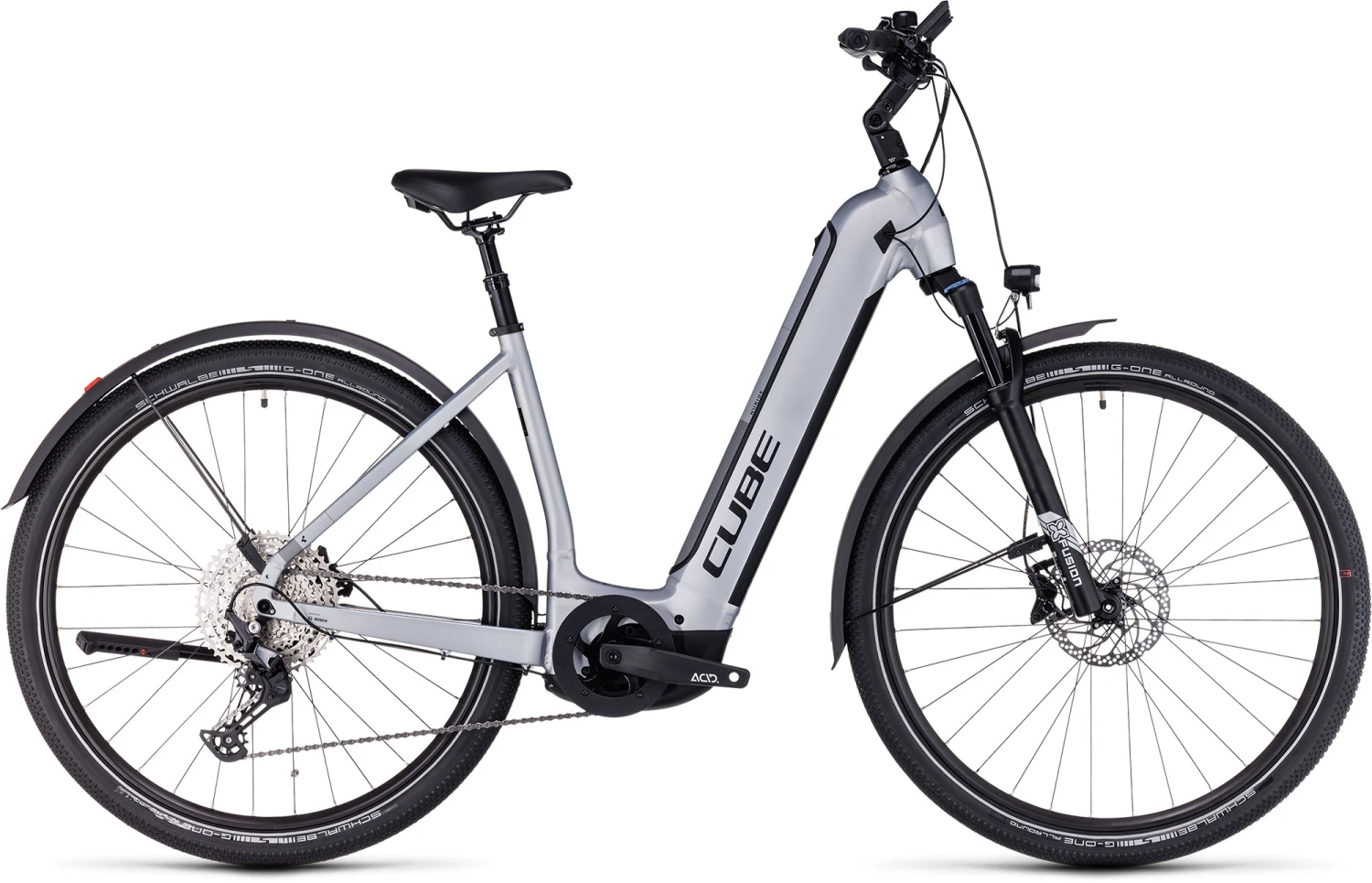 Das Modular Battery System des Nuride Hybrid EXC Allroad wurde im Hinblick auf einfaches Handling, hohen Komfort und ein elegantes Erscheinungsbild konzipiert. Dieses Konzept geht auf: Der Bosch PowerTube Akku verschwindet formschön und dezent im Chassis, egal ob Tiefeinsteiger, Trapezversion oder klassischer Herrenrahmen. Zudem ist es komplett mit dem neuen Smart System von Bosch kompatibel. Damit du für jede Tour und Fahrt optimal gerüstet bist, hat CUBE dem Bike zudem praktisches Zubehör spendiert: Schutzbleche, eine Lichtanlage und einen Seitenständer. Und die Efficient Comfort Geometry sorgt für einen erwartungsgemäß hohen Fahrkomfort, egal ob in der City oder bei Wochenendausflügen ins Grüne.