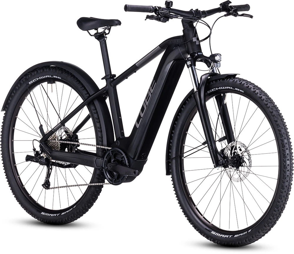 Der neue Reaction Hybrid Performance Allroad ist der Inbegriff von Vielseitigkeit. Warum? Weil er Akkus bis zu 625 Wh für hohe Reichweite aufnehmen kann. Außerdem ist sein geräuscharm arbeitender, aber nicht minder leistungsstarker Performance Line Antrieb von Bosch mit 75 Nm Drehmoment mit dem Bosch Smart System ausgestattet. CUBE hat dem Chassis zudem Schutzbleche, eine Lichtanlage und einen Flat Mount Seitenständer spendiert, sodass es überall und immer top Support bietet. Praktisch und clever: Auf der Unterseite des Oberrohrs gibt es Befestigungspunke zum Anbringen eines Schlosses oder Multi-Tools und in die Sattelklemme wurde ein kleiner Innensechskantschlüssel integriert. Die cleane Linienführung und ins Innere verlegte Züge sorgen für einen eleganten, sportlichen Look – Letztere halten zudem den Warungsaufwand gering. Den Rahmen gibt’s mit unserem SizeSplit System und auch als Trapezvariante – so findest du mit Sicherheit die perfekte Passform für dich!