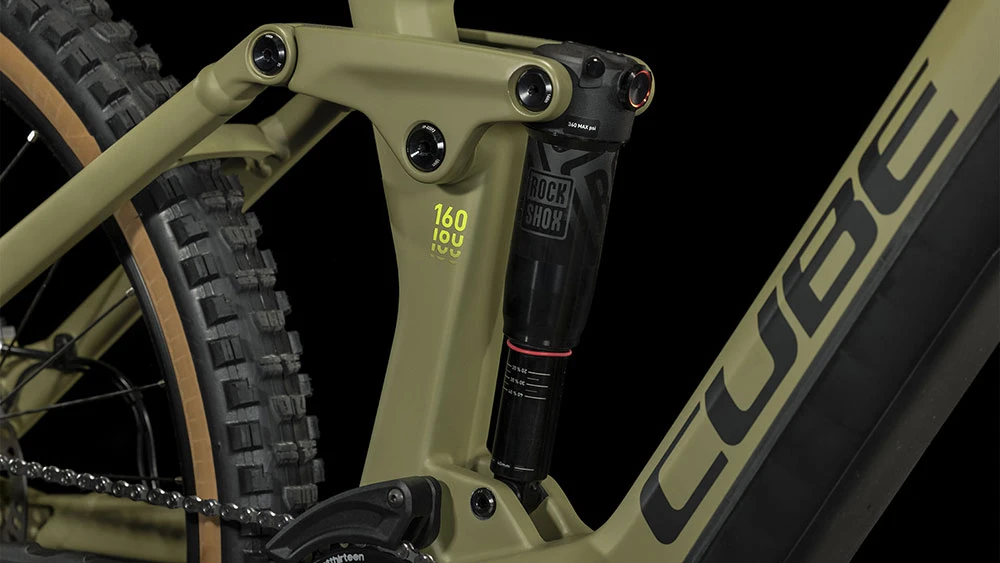 Ein Enduro-taugliches Fully mit E-Antrieb, gibt es sowas? Klar, das gibt’s, und es heißt Stereo Hybrid 160 HPC. Sein Carbonhauptrahmen kann dank Modular Battery System neben einem Bosch Motor der vierten Generation auch noch einen bis zu 750 Wh starken Akku aufnehmen. Und weil das Chassis trotzdem in allen Größen verfügbar ist, findest du auf jeden Fall das perfekte Set-up für dich und deine Anforderungen. CUBE hat bei der Entwicklung zudem viel Wert auf Vielseitigkeit und ein praktisches Handling gelegt. Deshalb gibt es genügend Platz für einen Flaschenhalter und du kannst die Akku-Abdeckung einfach per Druckknopf öffnen. Und dann die rennorientierte Geometrie, die Boost 148 Steckachse und das 1.5 Zoll Steuerrohr – allesamt Garanten für ein superpräzises Fahrgefühl und top Bodenhaftung, selbst auf verblockten oder sehr ruppigen Trails. Dazu bedeuten eine Trunnion Dämpferaufnahme, große Umlenkpunkte und im Rahmeninneren verlaufende Züge wenig Wartungsaufwand – und dadurch mehr Zeit für maximalen Offroad-Bike-Spaß, am Berg!
