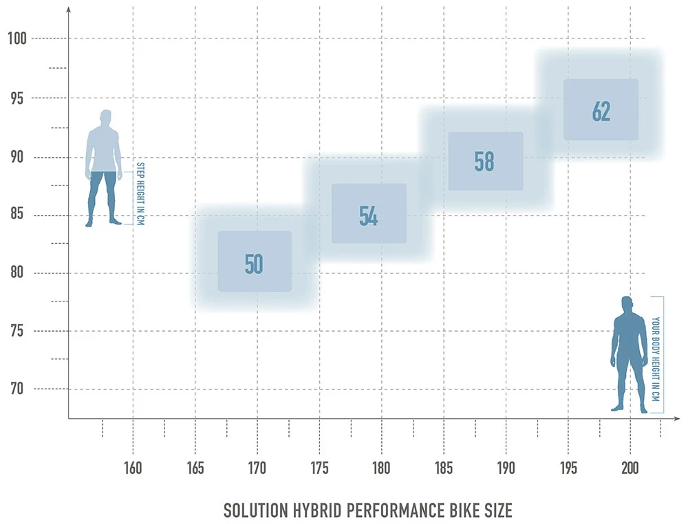 Mit Hilfe unserer Grafik wollen wir Dir eine Empfehlung bei der Suche nach Deiner richtigen Rahmengröße geben. Neben Schrittlänge sowie Körpergröße spielt natürlich auch Dein persönlicher Fahrstil, Einsatzbereich sowie Vorliebe eine große Rolle. Wenn Du mit Deinen Angaben im Grenzbereich liegen solltest, kannst Du zwischen zwei Rahmenhöhen wählen: die kleinere Rahmengröße ist agiler/wendiger/verspielter, die nächstgrößere Rahmenhöhe laufruhiger/spurtreuer.